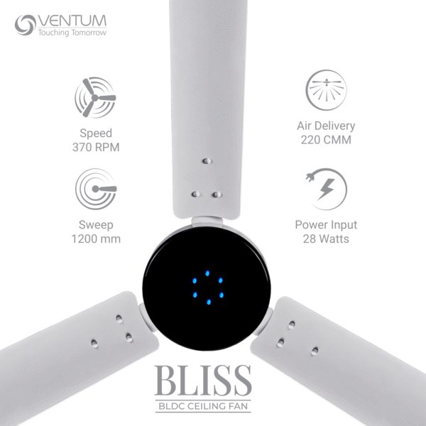 Special Feature Noise Free, Energy Saving, Adjustable Speed Control Blade Sweep (MM) 1200 mm (48”) Voltage 220V – 240V Power Input (Watts) 28W Included Components Remote Air Delivery (CMM) 220 Weight 4.5 kg Country of Origin India Other Body Feature Double ball bearing Included Components 1 main unit, Blades & Kit